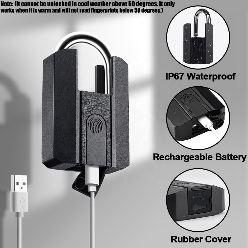 The Fingerprint Smart Padlock offers keyless convenience with advanced biometric technology. Unlock it instantly with a registered fingerprint, eliminating the hassle of keys or codes. Built with a robust, weather-resistant construction, it's ideal for securing lockers, gates, luggage, and storage units. Enjoy peace of mind with its reliable security and the ability to store multiple fingerprints for shared access. A perfect blend of modern innovation and everyday practicality.